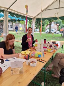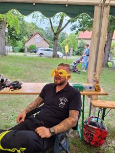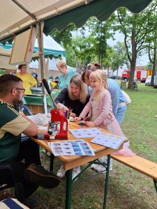 Wie in jedem Jahr fand am letzten Juli-Samstag auf der schönen alten Dorfaue das Pätzer Sommerfest statt. Wie schon seit etlichen Jahren wurde es vom Ortsbeirat organisiert und von den Vereinen sowie aktiven Pätzern unterstützt. So herrschte bereits am Freitagabend reges Treiben, denn die Vorbereitungen begannen. Am Samstag ab 10 Uhr fanden sich alle Aktiven, bepackt mit Equipment, ein. Es begann der Aufbau der Zelte und Bierzeltgarnituren. In kurzer Zeit verwandelte sich die Dorfaue in einen Festplatz. Die Veranstaltungsbühne und der Autoscooter als größte Bauwerke wurden installiert. Nach und nach fanden sich auch die Versorger ein: der Hähnchen- und Haxen-Grill, der Fischwagen und der „Bestwaner“ mit Bratwurst und Steak. Hardy hatte einen Kuchenstand mit Kaffeeausschank und die netten Bedienungen dafür organisiert. Die Bierwagen öffneten ihre Klappen. Feuerwehr und Heimatverein Pätz bauten ihre Zelte und sämtliche Bierzeltgarnituren auf – die Dorfaue füllte sich. Kaum blieb etwas Zeit sich nochmal „frisch“ zu machen, war es auch schon 14 Uhr, so dass der Bestenseer Männergesangsverein und das Orchester Zimmermann musikalisch die Veranstaltung einläuteten. Eine halbe Stunde später eröffneten Jürgen Ostländer, Vorsitzender des Ortsbeirates, und Bürgermeister Roland Holm das Fest. Die Dorfaue füllte sich nach und nach mit Besuchern. Es war ja auch für jeden etwas dabei: im Eventladen fand für die kleinen Gäste eine Vorführung des Puppentheaters „Edertal“ statt. Kurz darauf zeigten auf der Tanzfläche vor der Bühne die Mitglieder des Heideseer Sportvereins ihr Können. Die Musikband „halbtrocken“ gab anschließend ein zweistündiges Konzert und spielte Rock- und Pop-Klassiker. In der Pause trat der „Fit Kangoo Club“ aus Berlin auf. Die Mädels trugen gefederte Schuhe, die Känguruh-Sprünge ermöglichen, und brachten so nach heißer Musik die Tanzfläche zum Glühen. Aber nicht nur an der Bühne hatten unsere Gäste Spaß. Der Heimatverein Pätz betreute wie in jedem Jahr gemeinsam mit den Frauen des Feuerwehrvereins die Kinder-Ecke. Die Kleinen konnten sich schminken lassen und sich dann, wenn sie wollten, verkleidet nebenan mit der ganzen Familie zum Sofort-Foto in Pose bringen. Oder sie malten sich einen Button, den Patti dann presste. Am Bastelstand zeigten sie ihre künstlerischen Fähigkeiten und ließen Kunstwerke wie Blumensticker aus Ton oder Mobiles aus Pappe entstehen. Die Erwachsenen informierten sich in dieser Zeit über den Heimatverein Pätz oder kauften schon mal die Karten für eine Rundfahrt mit „Schnappi“, der ständig dicht umlagert war. Unweit von der Haltestelle verbrachten die Minis die Wartezeit in der Kinderbahn und dem Käferkarussell des Heimat- und Kulturvereins Bestensee oder mit Sprüngen auf der Hüpfburg. Die Erwachsenen stellten ihre Geschicklichkeit am Stand der Freiwilligen Feuerwehr Pätz im Bembelschieben unter Beweis, das am Abend prämiert wurde. Auf dem Weg zum Autoscooter begegnete man immer wieder Janine und hatte die Möglichkeit, Tombola-Lose für einen Euro zu kaufen. So verging der Nachmittag im Fluge, so dass um 19 Uhr nach der Tombola-Auslosung auch schon DJ Jürgen das Abendprogramm mit Discothek übernahm. Wie in Pätz üblich, füllte sich die Tanzfläche im Handumdrehen, was sich in den folgenden 7 Stunden auch nicht mehr änderte. Um zwei Uhr am frühen Morgen fand dann das 31. Pätzer Sommerfest seinen Abschluss. Ein großes Lob an die Verantwortlichen, alle Helfer und nicht zuletzt an Petrus, der sich sehr anständig benahm und sich den sonst obligatorischen Regenschauer während der Veranstaltung verkniff!