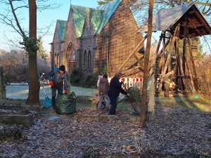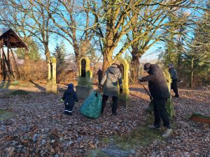 Den Blättermassen wurde der Kampf angesagt und Dank der vielen Hände nach nur knapp 2 Stunden siegreich beendet. Die alten Grabstellen im ehemaligen Wäldchen und die Pflegegräber an der Friedhofsmauer wurden mit Tanne und Grabkerzen versehen. Nun sah alles gepflegt und schön aus für die Winterruhe.