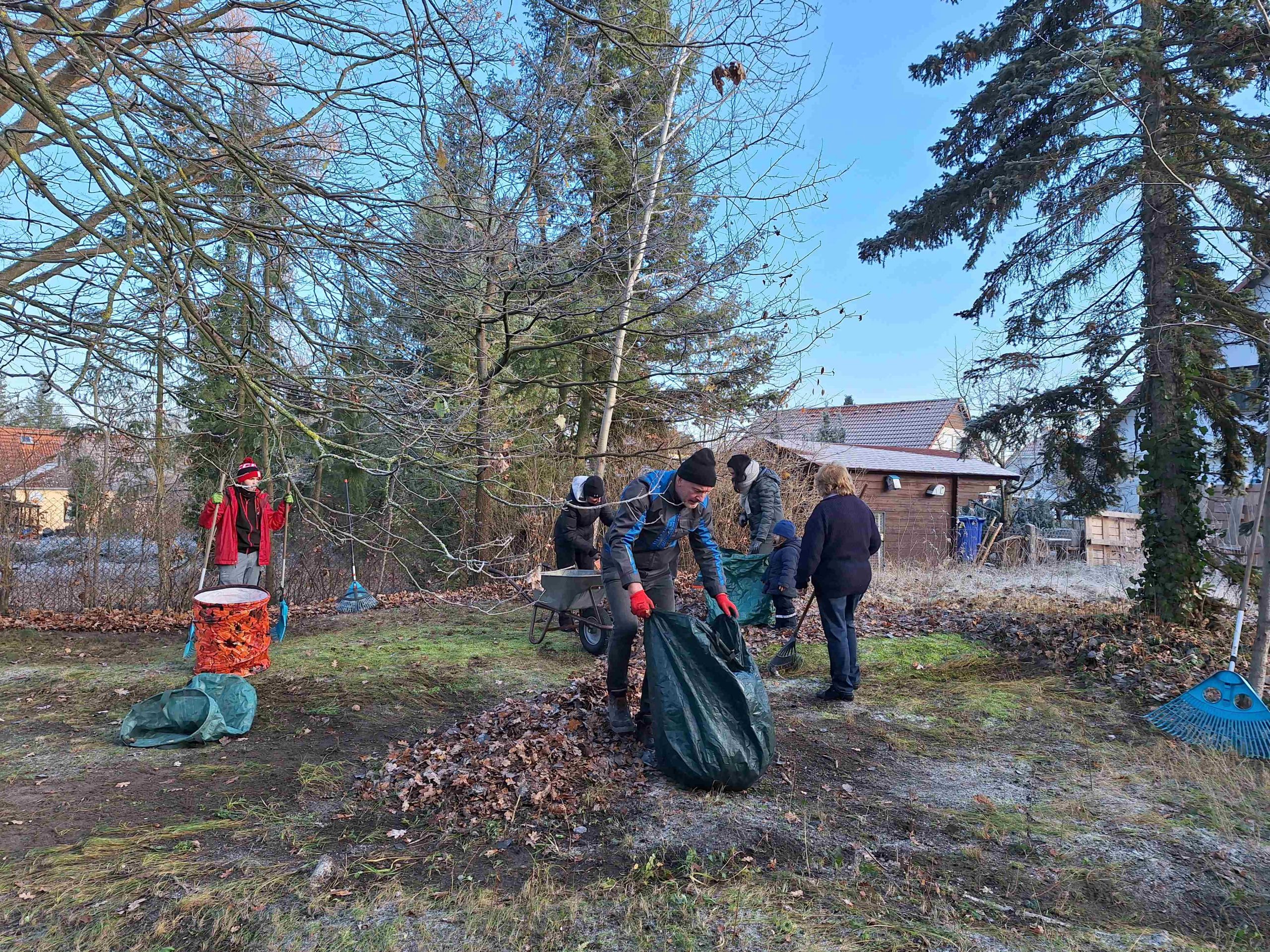 Den Blättermassen wurde der Kampf angesagt und Dank der vielen Hände nach nur knapp 2 Stunden siegreich beendet. Die alten Grabstellen im ehemaligen Wäldchen und die Pflegegräber an der Friedhofsmauer wurden mit Tanne und Grabkerzen versehen. Nun sah alles gepflegt und schön aus für die Winterruhe.