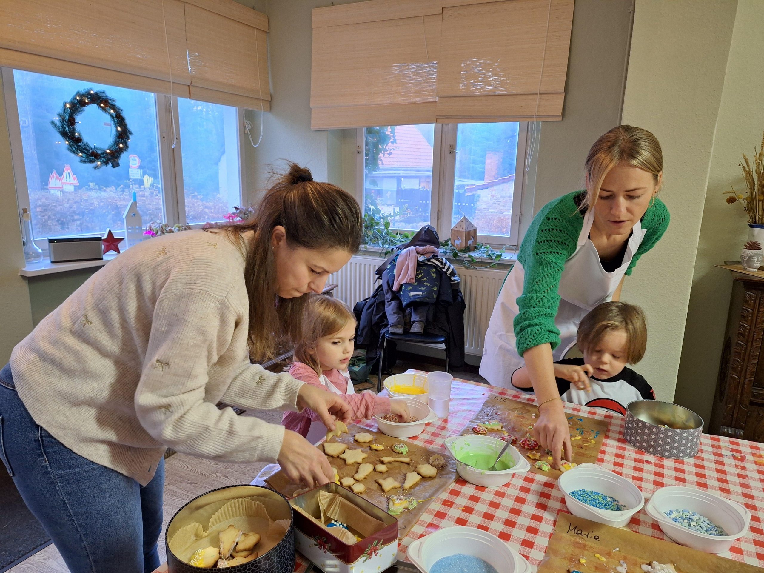 Marlis und Steffi hatten mit Unterstützung von Monika und Mareike mal wieder zum Weihnachtsplätzchenbacken eingeladen. Die neue Küche im Schrobsdorff-Haus bietet sich ja auch förmlich dazu an.
